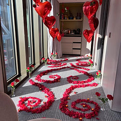 The ultimate grand gesture, the Diamond Package is designed for proposals and unforgettable milestones. This all-inclusive service covers the bedroom and bathroom with over 6,000 petals, 3D butterflies, hanging photos, and massive 50-inch balloons. It includes a custom message option (perfect for asking "Will you be my girlfriend?"), ensuring a breathtaking, fully customized luxury experience.